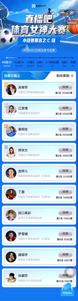 为你支持的她投票,每组前四将晋级淘汰赛!