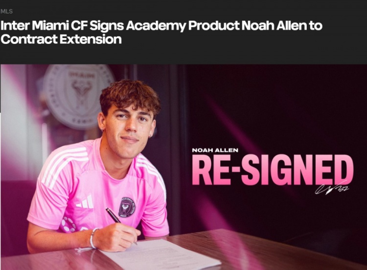 迈阿密国际官方:与诺亚-阿伦续约至2028年,有延长一年选项